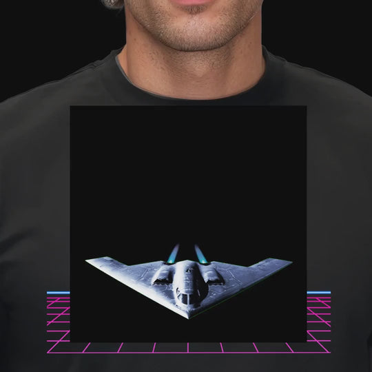 Mixed-reality V-Shirt featuring a B-2 Spirit keeping our night skies safe for humanity at 50,000 ft AGL.