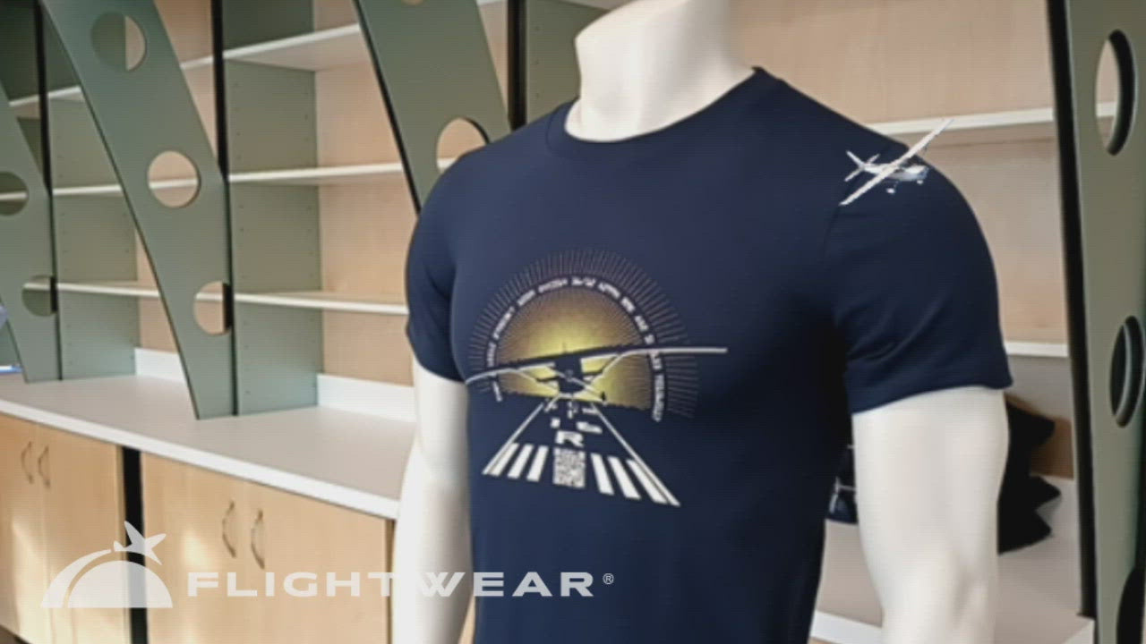 Designed exclusively for Van Nuys CA airport runway 16R, the graphic on the front of this shirt displays augmented reality on your mobile device--without an app!